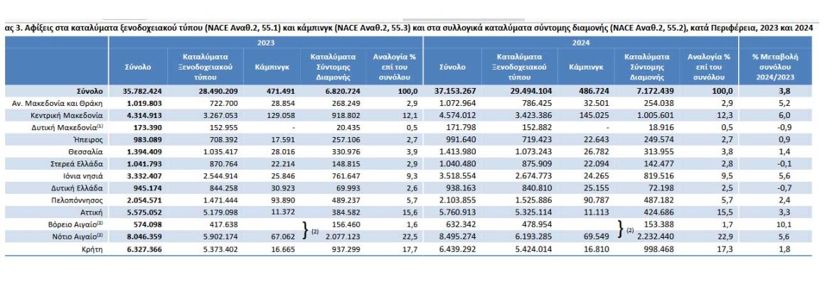 Η Δυτική Μακεδονία κατέχει το χαμηλότερο μερίδιο αφίξεων στη χώρα, με αναλογία μόλις 0,5% επί του συνόλου και για τα δύο έτη.