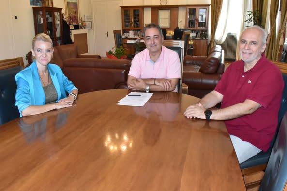 Ο Δήμαρχος Κοζάνης Γιάννης Κοκκαλιάρης υποδέχθηκε το μεσημέρι της Τετάρτης 6 Αυγούστου 2025 στο γραφείο του, τη νέα Διοικήτρια του Μαμάτσειου Νοσοκομείου Κοζάνης Ευτυχία Καπάτου.