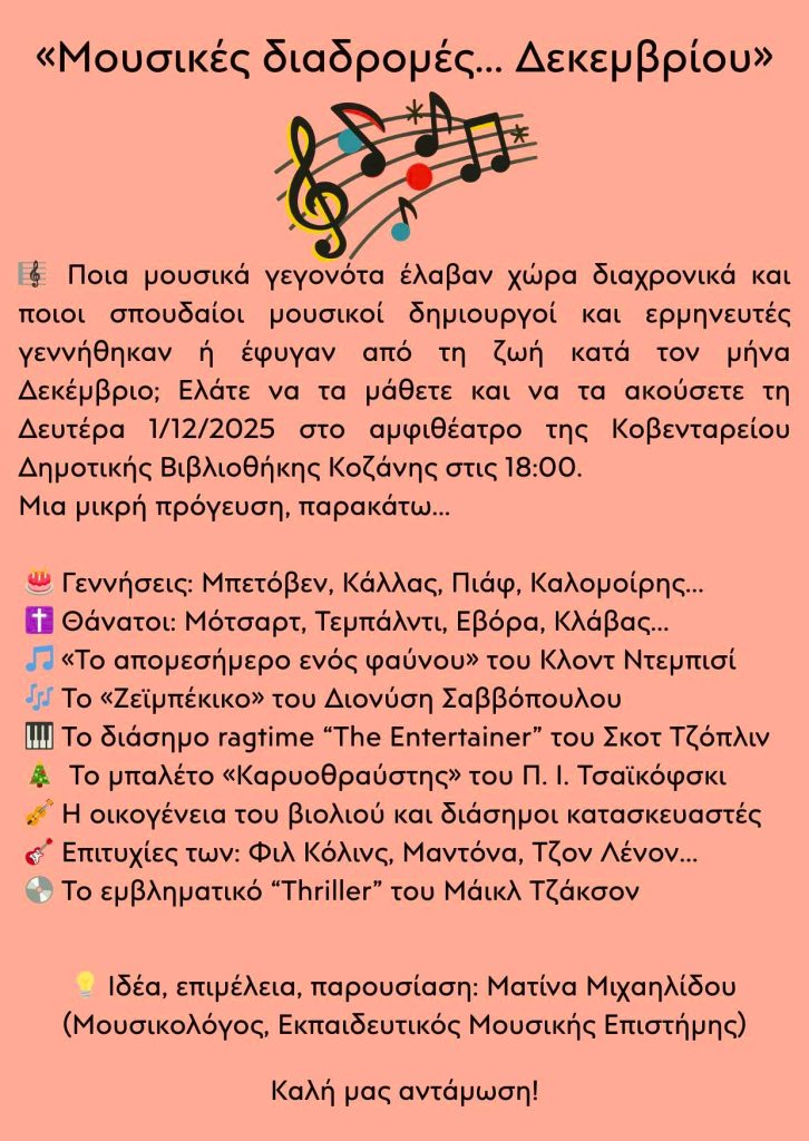 Μουσικά γεγονότα Δεκεμβρίου στην ΚΔΒΚ: Από τον Μπετόβεν έως τον Μάικλ Τζάκσον
