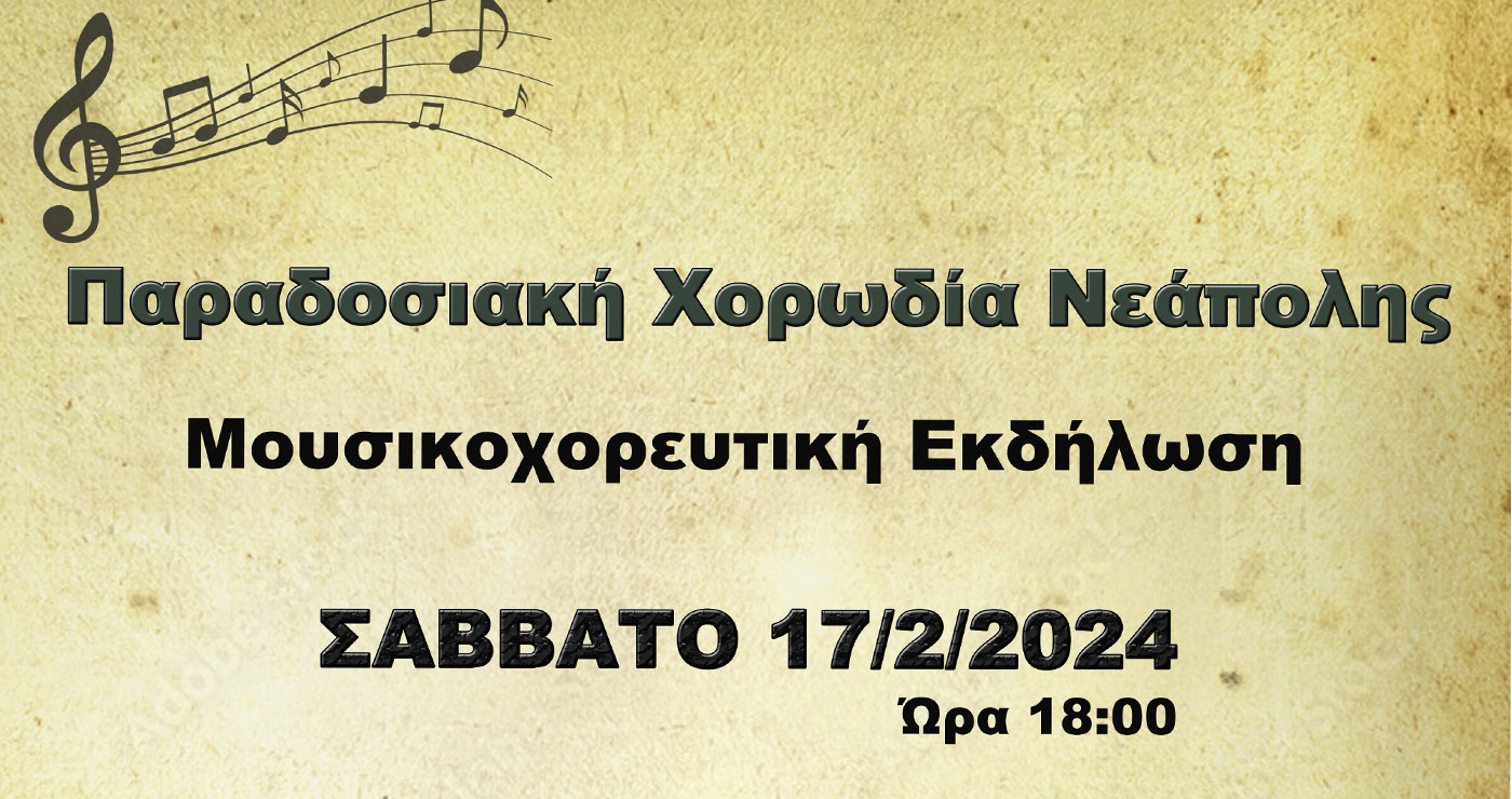 Μουσικοχορευτική εκδήλωση από την παραδοσιακή χορωδία Νεάπολης Σάββατο 17 Φεβρουαρίου