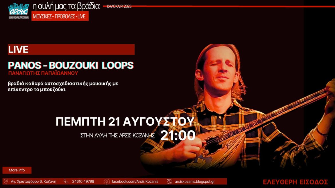 Η ΑΡΣΙΣ Κοζάνης σας προσκαλεί σε μια μοναδική μουσική εμπειρία με τον Παναγιώτη Παπαϊωάννου, την Πέμπτη 21 Αυγούστου, στις 21:00, στην αυλή του σπιτιού της.