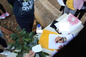 Λίγο πριν το τέλος των παρουσιάσεων, εκπρόσωποι όλων των μαθητών του 1ου Δημοτικού Σχολείου Σιάτιστας χάρισαν στον παραολυμπιονίκη μια ανθοδέσμη από κλαδιά δάφνης, σύμβολο της νίκης στην αρχαία Ελλάδα, και μια κατασκευή, το έμβλημα των Παραολυμπιακών αγώνων, με τις 3 σταγόνες (μπλε, κόκκινη, πράσινη) που συμβολίζουν τα σημαντικότερα συστατικά της ανθρώπινης ύπαρξης, ΨΥΧΗ – ΣΩΜΑ – ΠΝΕΥΜΑ. Μια κατασκευή για την οποία χρειάστηκαν τα 117 δαχτυλικά αποτυπώματα όλων των μαθητών του σχολείου, ένα ομαδικό «δώρο» για τον επίτιμο καλεσμένο.