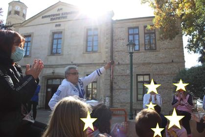 Μαθητές και δάσκαλοι υποδέχτηκαν με μεγάλη χαρά τον Έλληνα αθλητή, η παρουσίαση του οποίου έγινε τμηματικά στην εσωτερική σάλα του σχολείου και στο εξωτερικό αμφιθέατρο, λόγω των μέτρων κατά του κορωνοϊού.