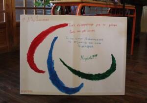 Μεγάλη η χαρά των παιδιών τα οποία ήρθαν σε επαφή και γνώρισαν από κοντά τον αθλητή που έφερε το χάλκινο μετάλλιο στην Ελλάδα κατά τους Παραολυμπιακούς αγώνες του Σίδνεϋ το 2000.