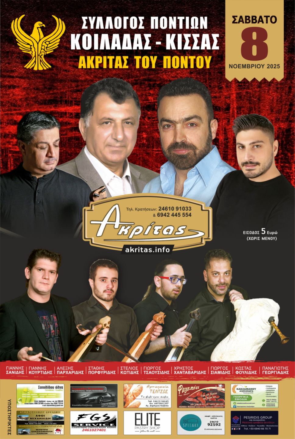 Ο Σύλλογος Ποντίων Κοιλάδας – Κίσσας διοργανώνει μεγάλη Μουσική συνάντηση το Σάββατο 8 Νοεμβρίου