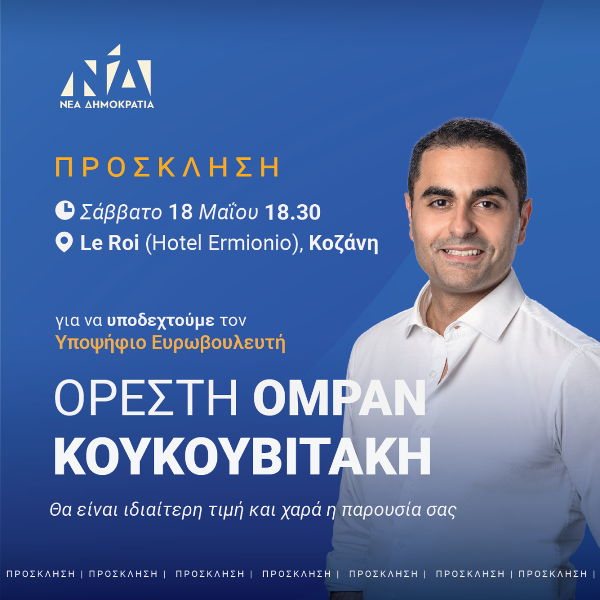 Ο υποψήφιος Ορέστης Ομραν Κουκουβιτάκης στην Κοζάνη το Σάββατο 18 Μαϊου