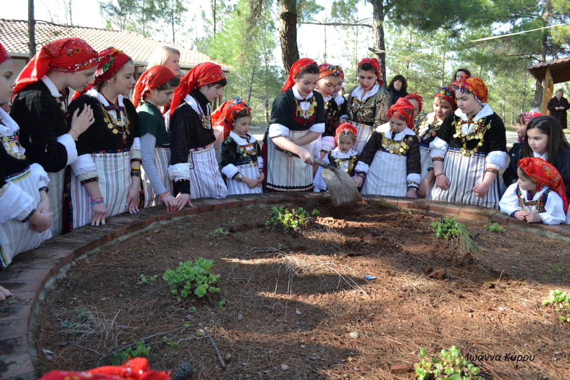 Μετά αγαπημένες όλες μαζί παίρνουν την κεραμίδα και πάνε στον Άγιο Κωνσταντίνο στη θέση «Άργανο» τραγουδώντας: