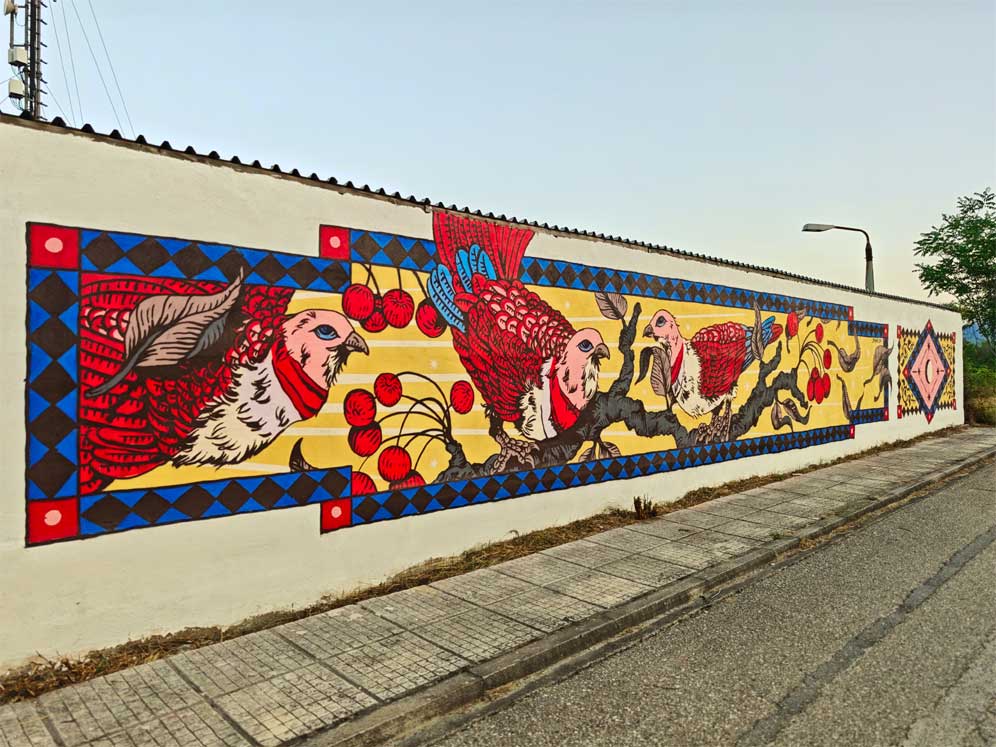 Το έργο απλώνεται σε έναν εντυπωσιακό τοίχο 40 μέτρων και το σημείο που επιλέχθηκε δεν είναι τυχαίο: πρόκειται για μια περασιά που χρησιμοποιούν καθημερινά πολίτες που τρέχουν, περπατούν, κάνουν ποδήλατο, κατευθύνονται στις εργασίες τους ή προς το Πανεπιστήμιο. Κομμάτι της καθημερινής μας πορείας που έγινε καμβάς, γιατί η τέχνη δεν φυλάσσεται σε βιτρίνες, αλλά κυκλοφορεί ελεύθερη στους δρόμους.