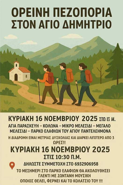 Ορεινή Πεζοπορία στον Άγιο Δημήτριο με κατάληξη και γλέντι στο Πάρκο ελαφιών Αγίου Παντελεήμονα