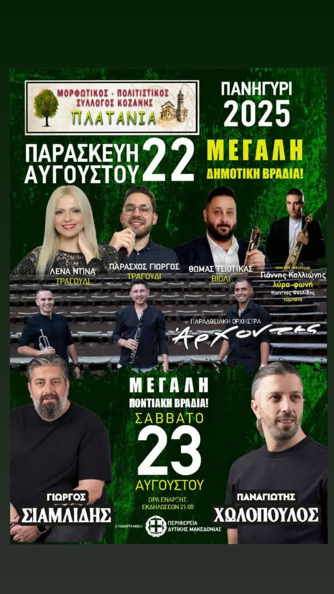 Πανηγύρι 2025. Μεγάλη Δημοτική Βραδιά στα Πλατάνια