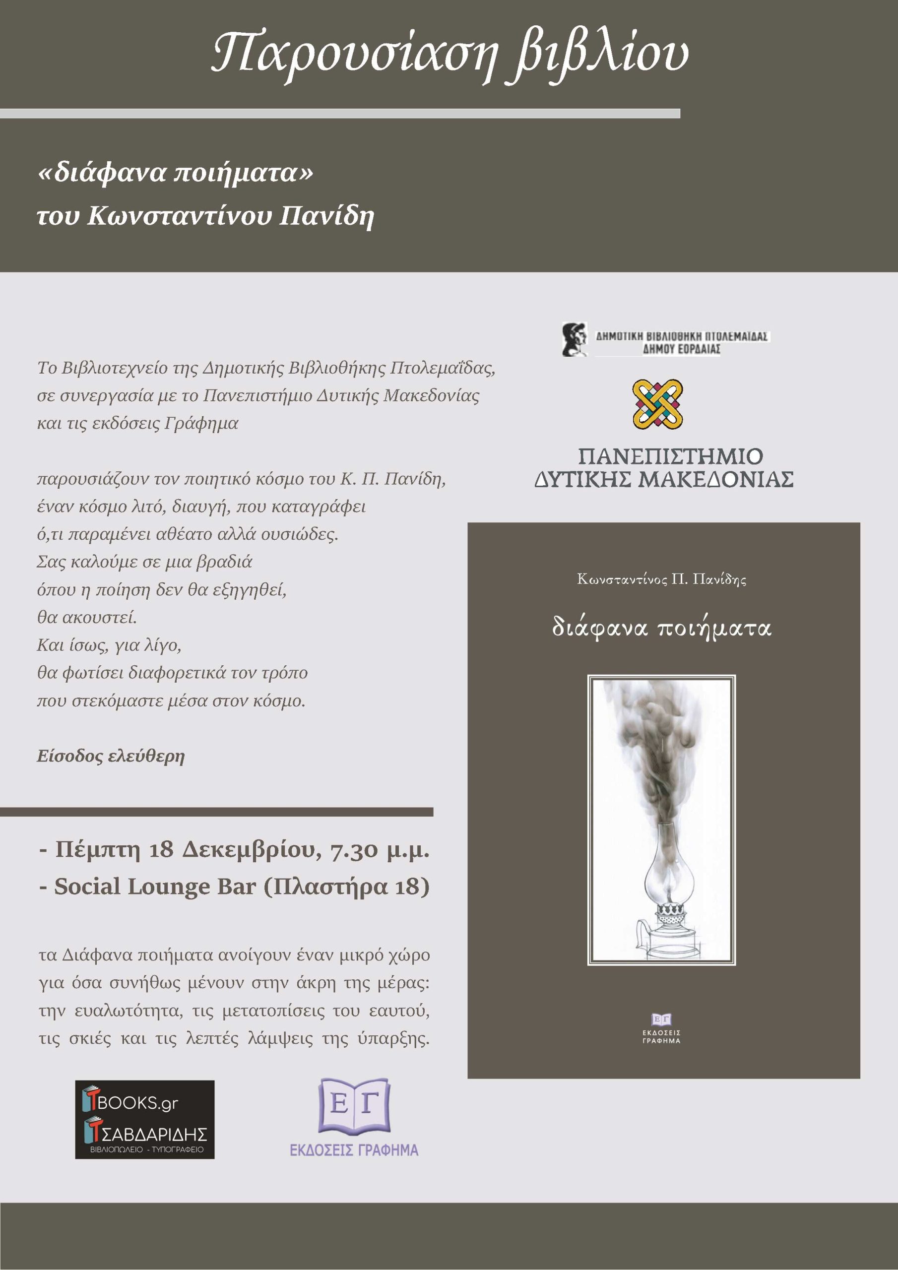 Παρουσίαση της συλλογής Διάφανα ποιήματα του Κωνσταντίνου Π. Πανίδη
