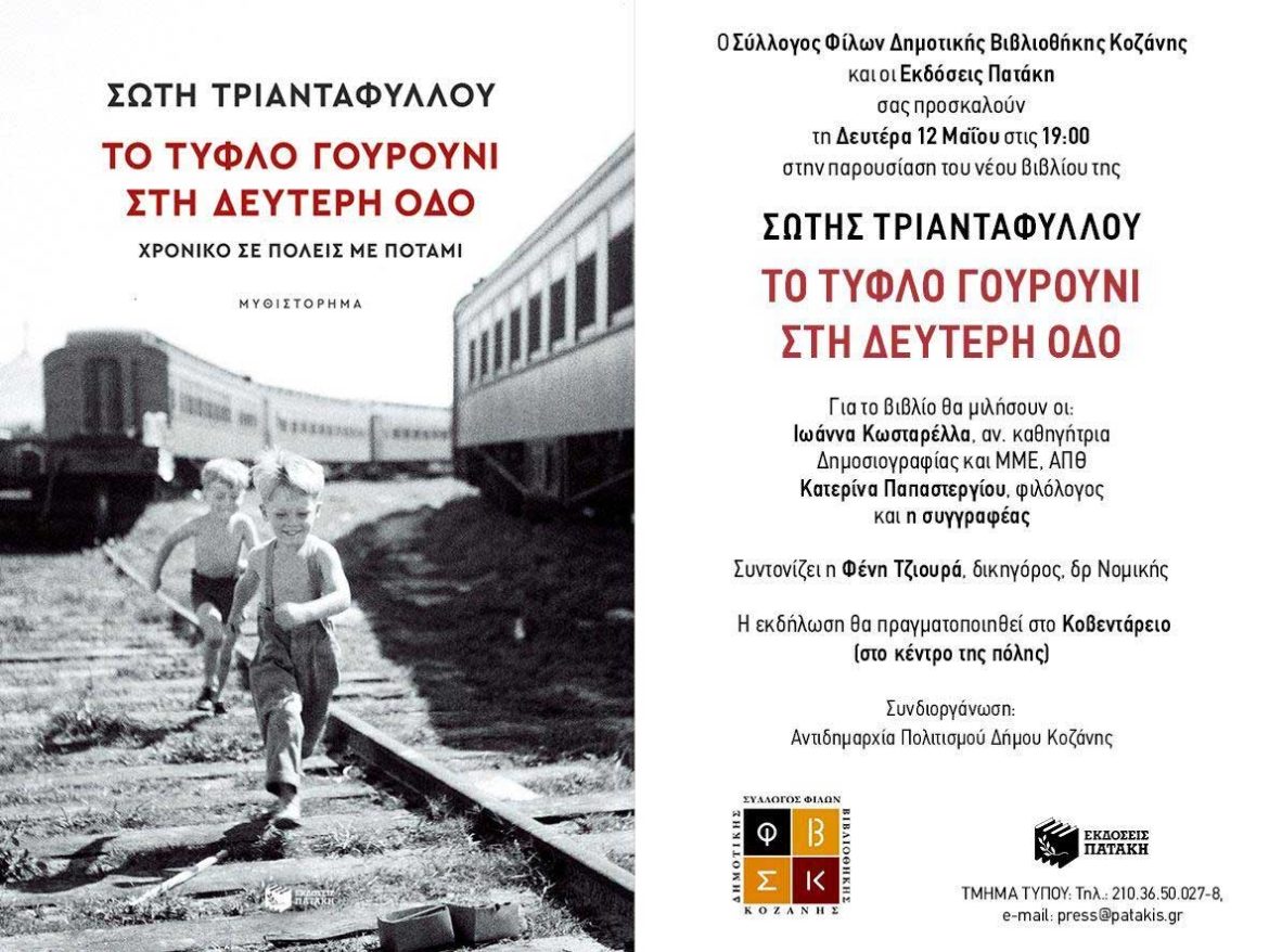 Παρουσίαση του βιβλίου ΤΟ ΤΥΦΛΟ ΓΟΥΡΟΥΝΙ ΣΤΗ ΔΕΥΤΕΡΗ ΟΔΟ ΤΗΣ ΣΩΤΗΣ ΤΡΙΑΝΤΑΦΥΛΛΟΥ Δευτέρα 12 Μαΐου