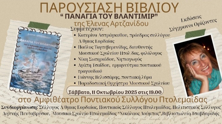 Παρουσίαση Βιβλίου “Παναγία του Βλαντιμίρ” της Έλενας Αρτζανίδου στην Πτολεμαΐδα