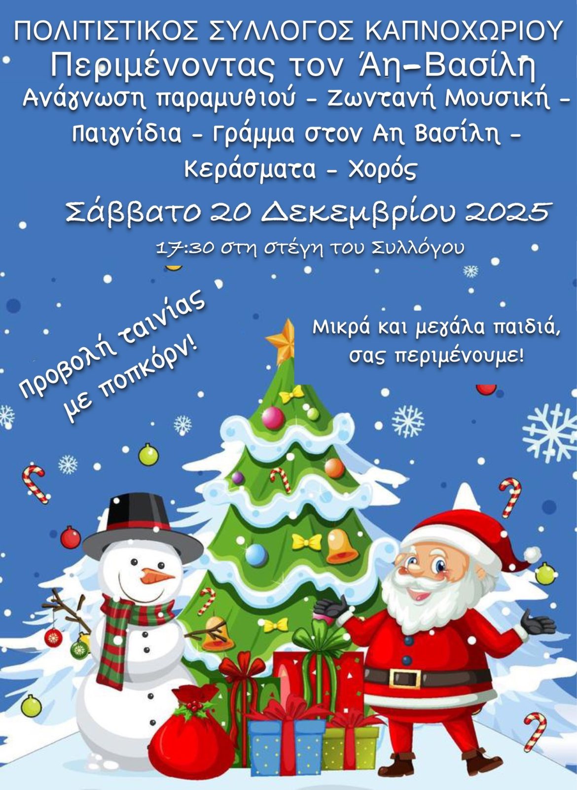 Περιμένοντας τον Αη-Βασίλη: Χριστουγεννιάτικη Γιορτή για μικρά και μεγάλα Παιδιά στο Καπνοχώρι