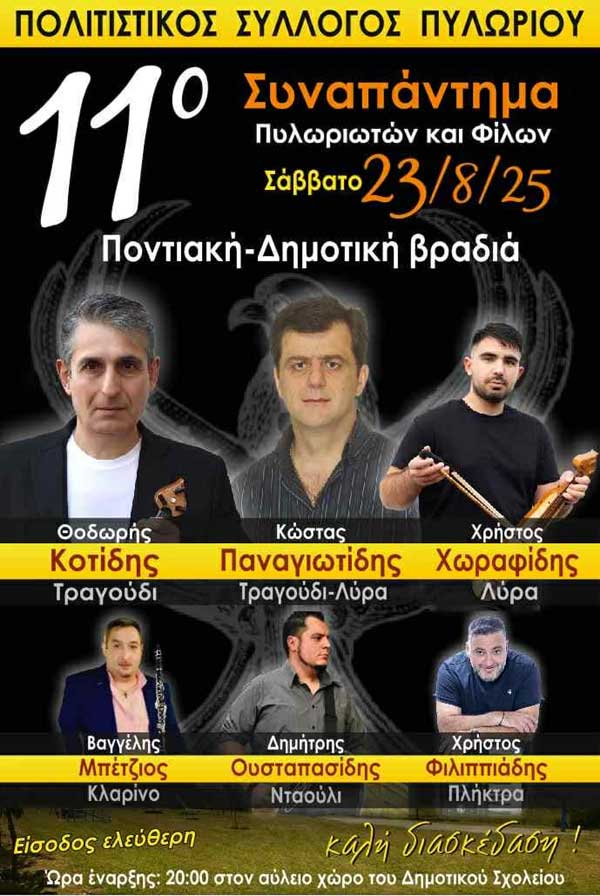 Δήμος Βοΐου: Ποντιακή & Δημοτική Βραδιά στο Πυλωρί το Σάββατο 23 Αυγούστου