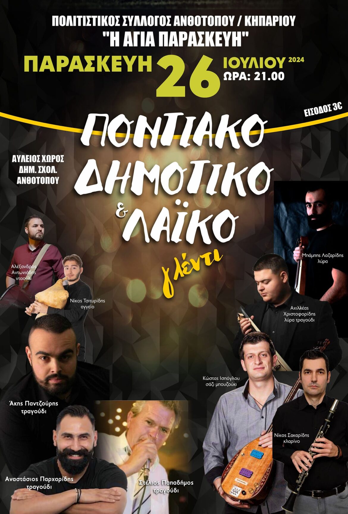 Ποντιακό, Δημοτικό και Λαϊκό γλέντι στον Ανθότοπο-Κηπάρι 26 Ιουλίου