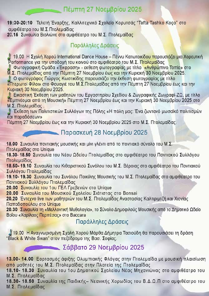 ΠΡΟΓΡΑΜΜΑ 1ου 4ήμερου Μουσικού Φεστιβάλ «Νικόλαος Δούμπας»