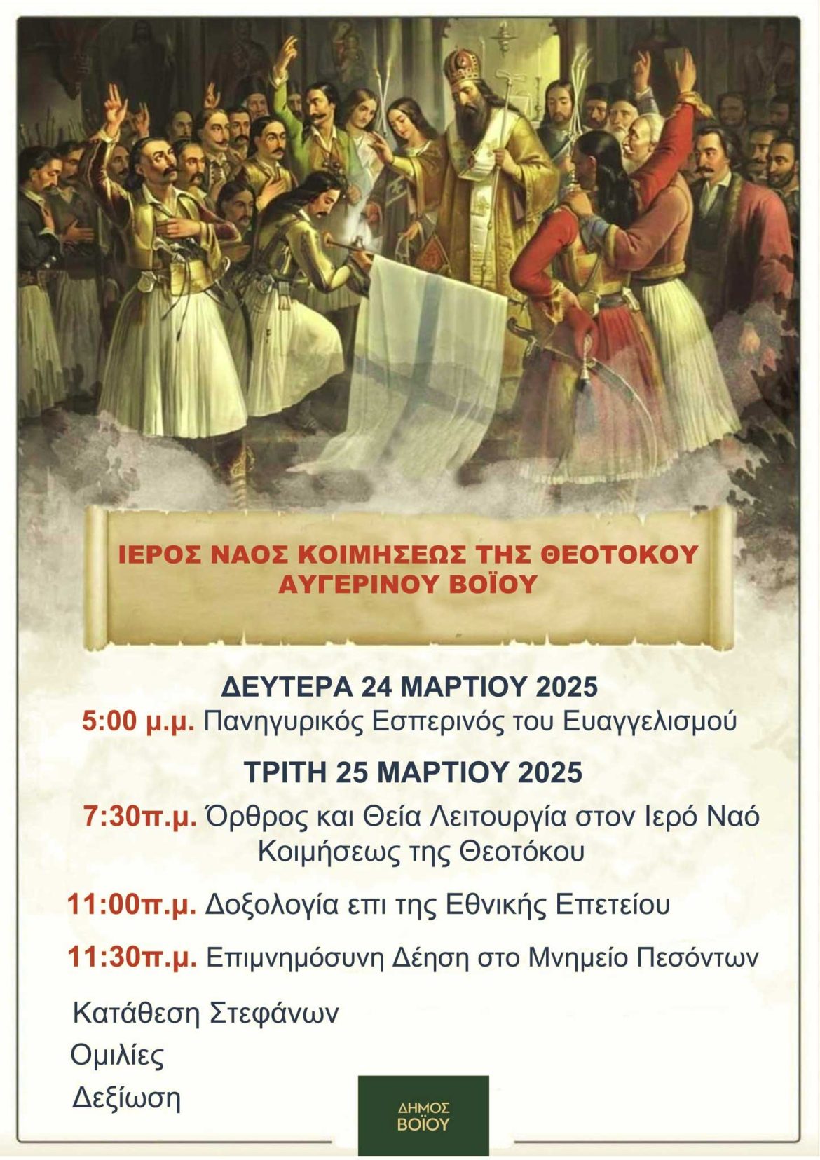 Πρόγραμμα της Εθνικής μας Εορτής της 25ης Μαρτίου στην Τ.Κ. Αυγερινού.