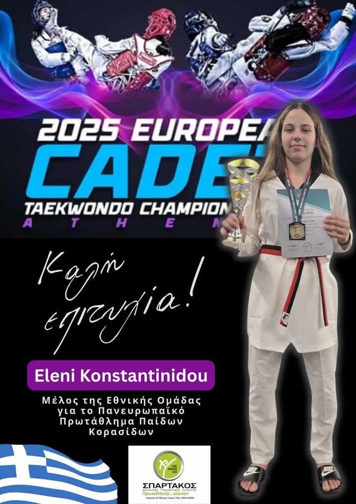 Στην Εθνική η Ελένη Κωνσταντινίδου του ΣΠΑΡΤΑΚΟΥ για το Πανευρωπαϊκό Πρωτάθλημα Tae Kwon Do