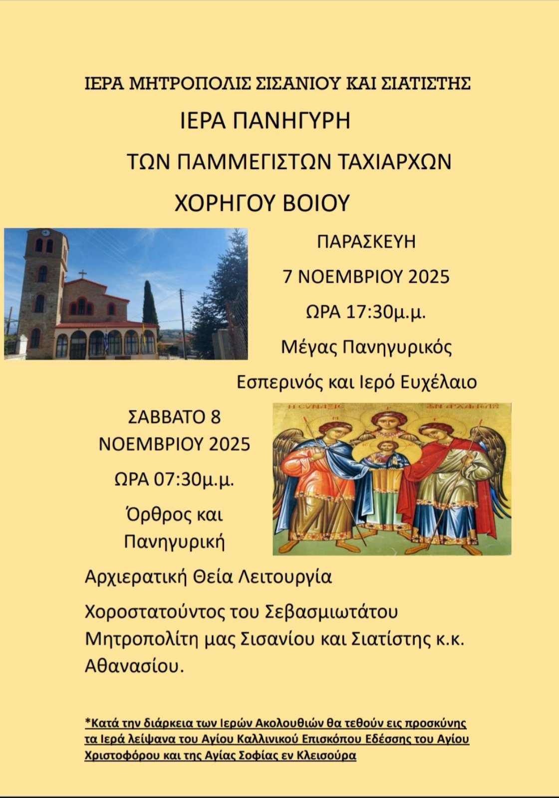 Ο Σεβασμιώτατός μας ήταν προγραμματισμένο να χοροστατήσει το Σάββατο το πρωί στην λειτουργία αλλά λόγω απροόπτου θα χοροστατήσει στον εσπερινό της Παρασκευής ώρα 5μιση και θα τελέσει και το Ιερό Ευχέλαιο Σας περιμένουμε να μας τιμήσετε με την παρουσία σας!!!