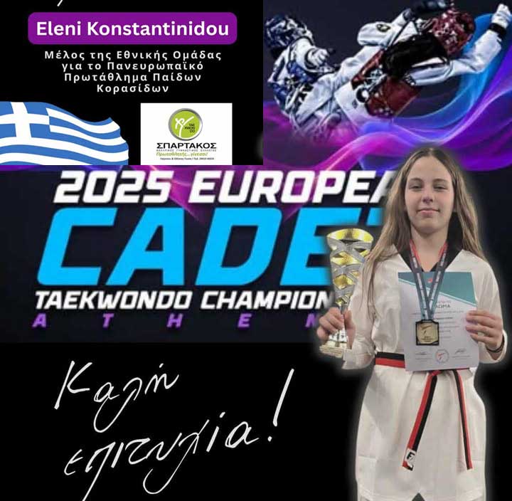 Στο πανευρωπαϊκό πρωτάθλημα παίδων κορασίδων η πρωταθλήτρια του συλλόγου ΑΣ Σπάρτακος, Κωνσταντινίδου Ελένη το Σάββατο 8 Νοεμβρίου