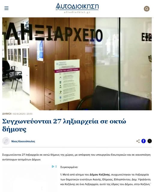 Συγχωνεύονται 27 ληξιαρχεία σε οκτώ δήμους της χώρας, με απόφαση του υπουργείου Εσωτερικών και σε ικανοποίηση αντίστοιχων αιτημάτων Δήμων.