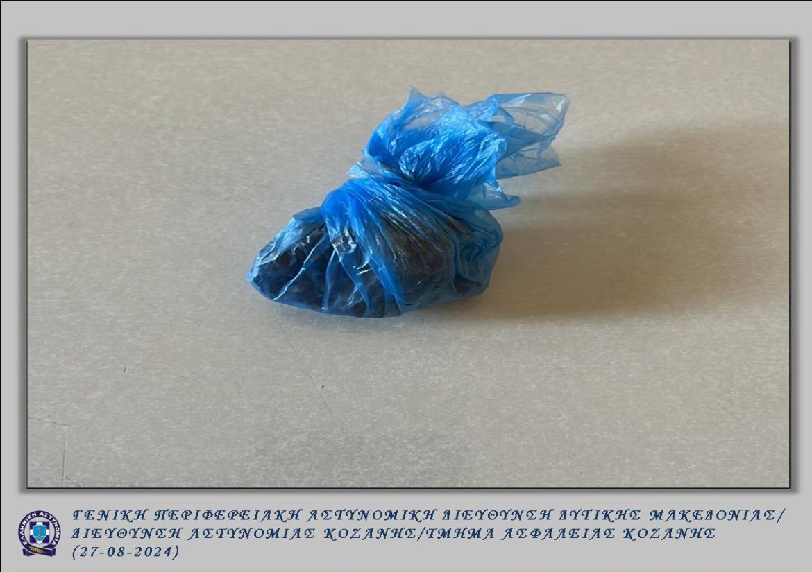 Συνελήφθη χθες (26-08-2024) τις μεσημβρινές ώρες στην πόλη της Κοζάνης, από αστυνομικούς του Τμήματος Ασφάλειας Κοζάνης με τη συνδρομή αστυνομικού εκτός διατεταγμένης υπηρεσίας, 41χρονος ημεδαπός, για κατοχή και διακίνηση ναρκωτικών ουσιών.