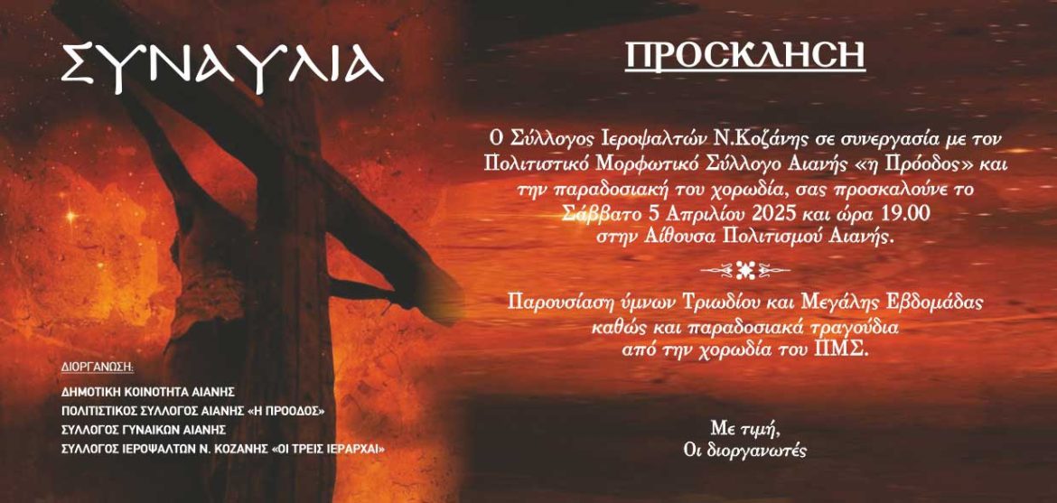 Συναυλία με εκκλησιαστικούς ύμνους του τριωδίου και της Μ. Εβδομάδας στην Αιανή