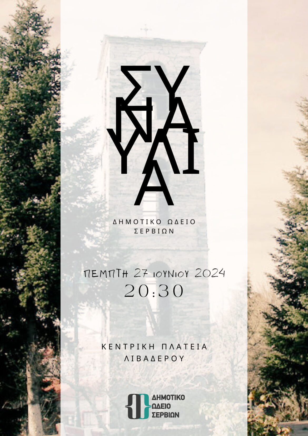 Ο Δήμος Σερβίων και το Δημοτικό Ωδείο Σερβίων διοργανώνουν μια ξεχωριστή συναυλία τάξεων στη Δημοτική Ενότητα Λιβαδερού. Η εκδήλωση θα πραγματοποιηθεί την Πέμπτη, 27 Ιουνίου 2024, στις 20:30 στην κεντρική πλατεία του χωριού.
