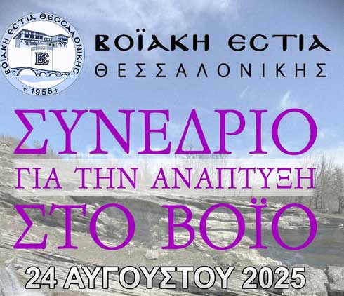 Η Βοϊακή Εστία Θεσσαλονίκης διοργανώνει Συνέδριο για την Ανάπτυξη στο Βόιο, την Κυριακή 24 Αυγούστου 2025, στις 10:30 π.μ., στους χώρους της Σχολής Πυροσβεστικής (Οικοτροφείο Τσοτυλίου), με στόχο να τεθούν επί τάπητος προτάσεις, ιδέες και σχέδια που θα συμβάλουν στην ουσιαστική αναγέννηση και πρόοδο της περιοχής.