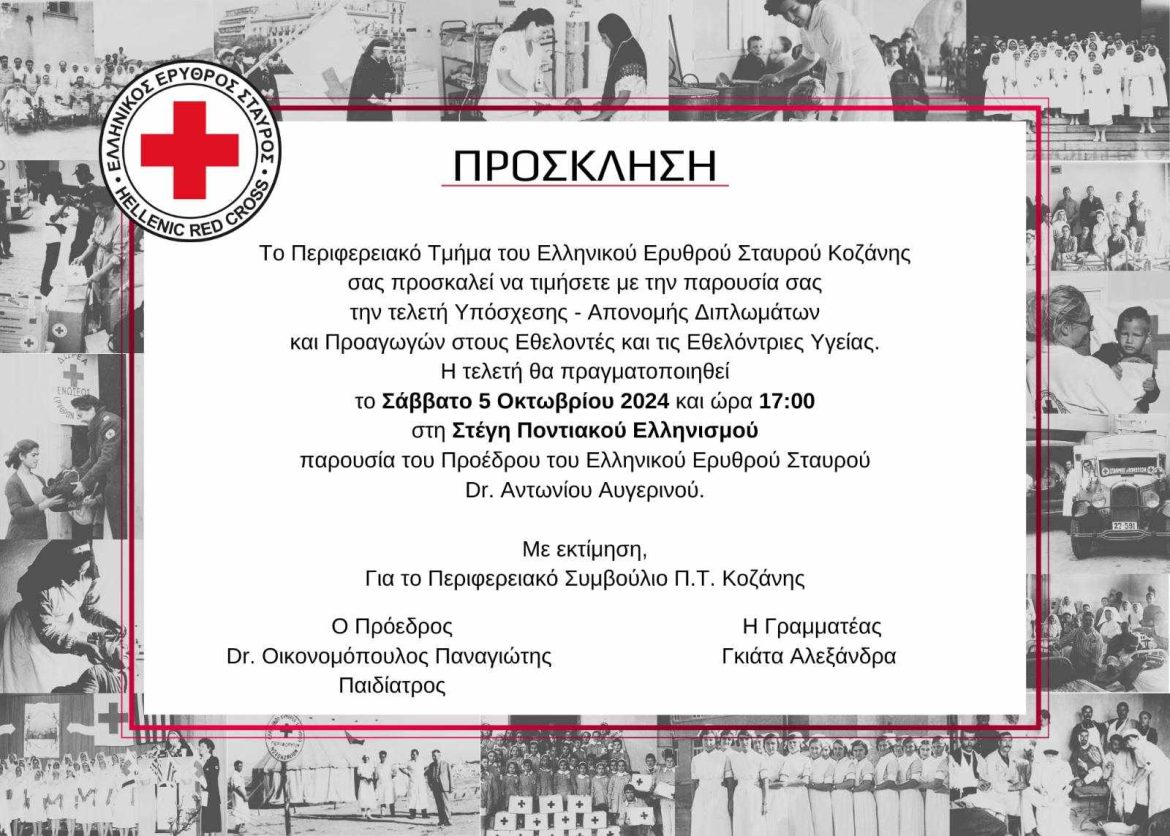 Τελετή υπόσχεσης -απονομής διπλωμάτων και προαγωγών σε εθελοντές -τριες της Υγείας από το Περιφερειακό Τμήμα του ΕΕΣ Κοζάνης