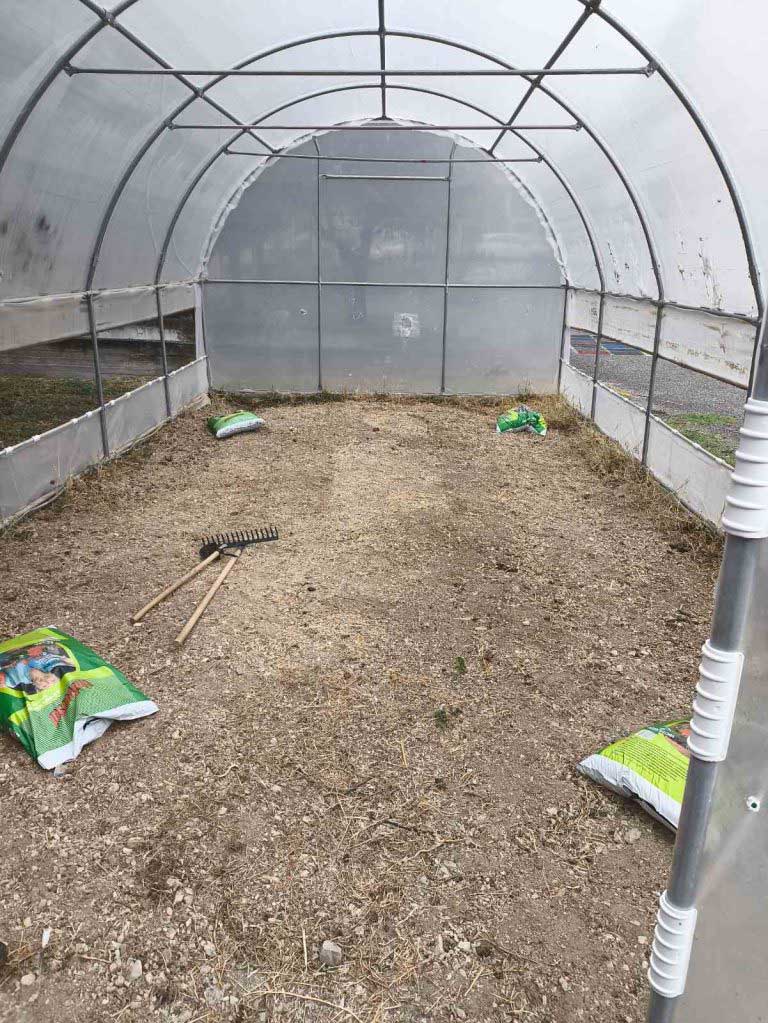 Φέτος, λίγες μόνο μέρες μετά τον Αγιασμό στο σχολείο μας και την προσαρμογή των παιδιών, αρχίσαμε δουλειά στο θερμοκήπιό μας. Ξεκινήσαμε από το μηδέν καθαρίζοντας τον εσωτερικό του χώρο τόσο από μικροαντικείμενα όσο και από ξερά χόρτα. Φωνάξαμε έναν κύριο από το χωριό της Άνω Κώμης, όπου εδρεύει το σχολείο μας, και μας φρέζαρε (μας όργωσε) το έδαφος εντός θερμοκηπίου. Έπειτα αγοράσαμε και διασπείραμε οργανική ουσία (φυλλόχωμα / φυτόχωμα) ώστε να βελτιώσουμε τη δομή του εδάφους. Το επόμενο βήμα ήταν να φυτέψουμε 150 μαρούλια (τρία είδη / ποικιλίες: λείο πράσινο, σγουρό πράσινο, σγουρό κόκκινο) και να σπείρουμε μερικά ακόμα είδη λαχανικών (σπανάκι, ρόκα, μαϊντανό, ραπανάκι, κρεμμυδάκι). Τοποθετήσαμε σε κάθε εδαφοτεμάχιο και πινακίδα με το όνομα του λαχανικού, τις οποίες σχεδίασαν και κατασκεύασαν οι μαθητές μας υπό την εποπτεία της καθηγήτρια των εικαστικών. Με την καθημερινή φροντίδα μας, μαθητών και εκπαιδευτικών του τομέα Γεωπονίας, τα φυτά μας μεγάλωσαν και σχεδόν είναι έτοιμα για συγκομιδή. Ήδη αρχίσαμε να διανέμουμε στους μαθητές σταδιακά ένα μικρό μέρος της παραγωγής μας προς ανταμοιβή του κόπου τους και ενίσχυση της όρεξης με την οποία ήδη ασχολούνται στα εργαστηριακά μας μαθήματα.