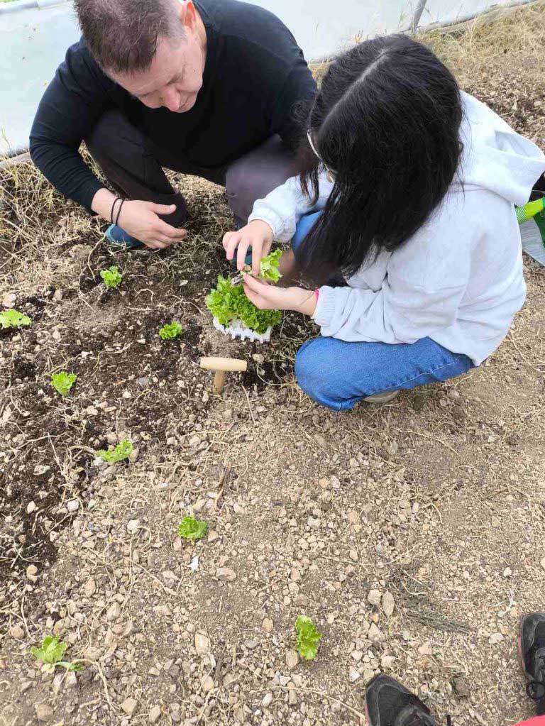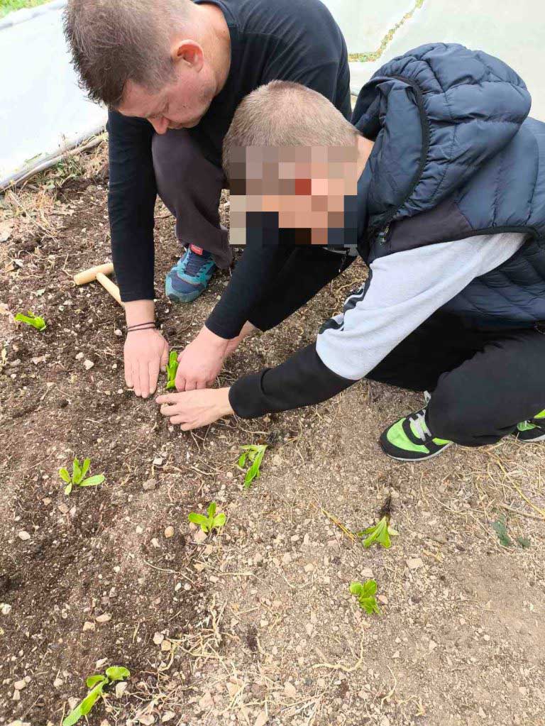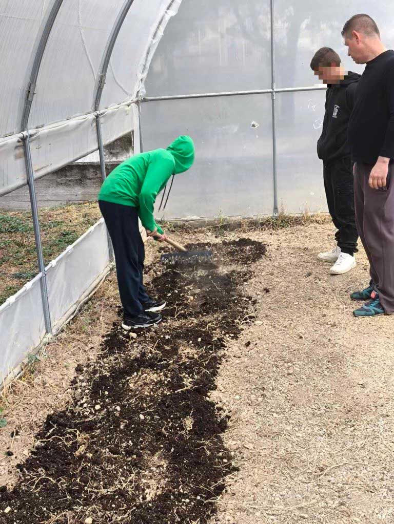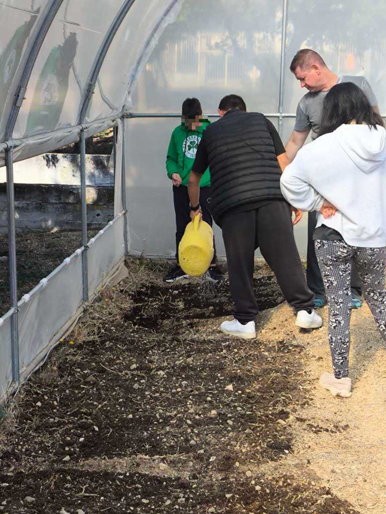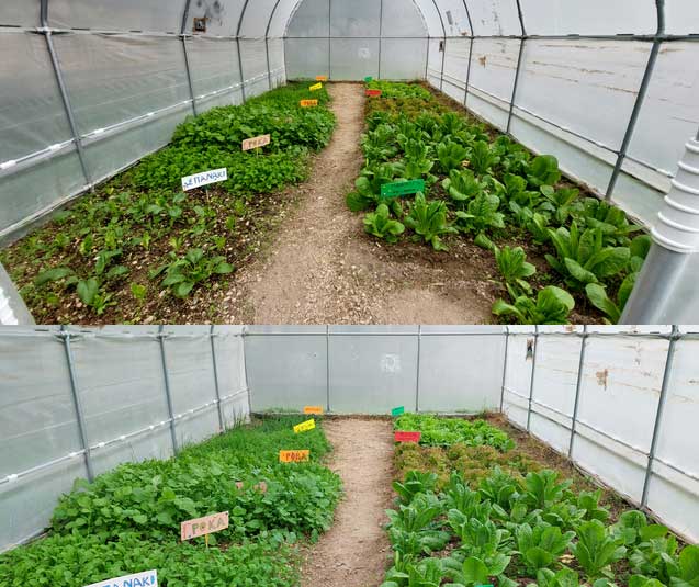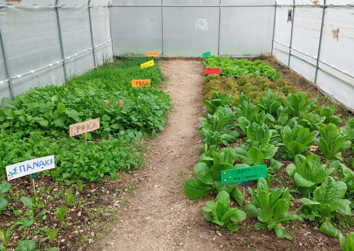 Φέτος, λίγες μόνο μέρες μετά τον Αγιασμό στο σχολείο μας και την προσαρμογή των παιδιών, αρχίσαμε δουλειά στο θερμοκήπιό μας. Ξεκινήσαμε από το μηδέν καθαρίζοντας τον εσωτερικό του χώρο τόσο από μικροαντικείμενα όσο και από ξερά χόρτα. Φωνάξαμε έναν κύριο από το χωριό της Άνω Κώμης, όπου εδρεύει το σχολείο μας, και μας φρέζαρε (μας όργωσε) το έδαφος εντός θερμοκηπίου. Έπειτα αγοράσαμε και διασπείραμε οργανική ουσία (φυλλόχωμα / φυτόχωμα) ώστε να βελτιώσουμε τη δομή του εδάφους. Το επόμενο βήμα ήταν να φυτέψουμε 150 μαρούλια (τρία είδη / ποικιλίες: λείο πράσινο, σγουρό πράσινο, σγουρό κόκκινο) και να σπείρουμε μερικά ακόμα είδη λαχανικών (σπανάκι, ρόκα, μαϊντανό, ραπανάκι, κρεμμυδάκι). Τοποθετήσαμε σε κάθε εδαφοτεμάχιο και πινακίδα με το όνομα του λαχανικού, τις οποίες σχεδίασαν και κατασκεύασαν οι μαθητές μας υπό την εποπτεία της καθηγήτρια των εικαστικών. Με την καθημερινή φροντίδα μας, μαθητών και εκπαιδευτικών του τομέα Γεωπονίας, τα φυτά μας μεγάλωσαν και σχεδόν είναι έτοιμα για συγκομιδή. Ήδη αρχίσαμε να διανέμουμε στους μαθητές σταδιακά ένα μικρό μέρος της παραγωγής μας προς ανταμοιβή του κόπου τους και ενίσχυση της όρεξης με την οποία ήδη ασχολούνται στα εργαστηριακά μας μαθήματα.