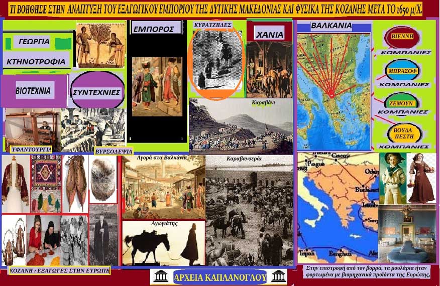 Και καταλήγαμε ότι το εξωτερικό εμπόριο οδήγησε , δημιουργία Κοζανίτικων εμπορικών παροικιών (κομπανιών) σε πόλεις της Βαλκανικής, κυρίως στην Αυστρουγγαρία, αλλά και στα μεγάλα αστικά κέντρα, Κωνσταντινούπολη, Ουγγαρία, Πολωνία, Γερμανία. που ανέδειξαν τότε την Κοζάνη, στην αλλαγή της κοινωνικής αντίληψης των ανθρώπων