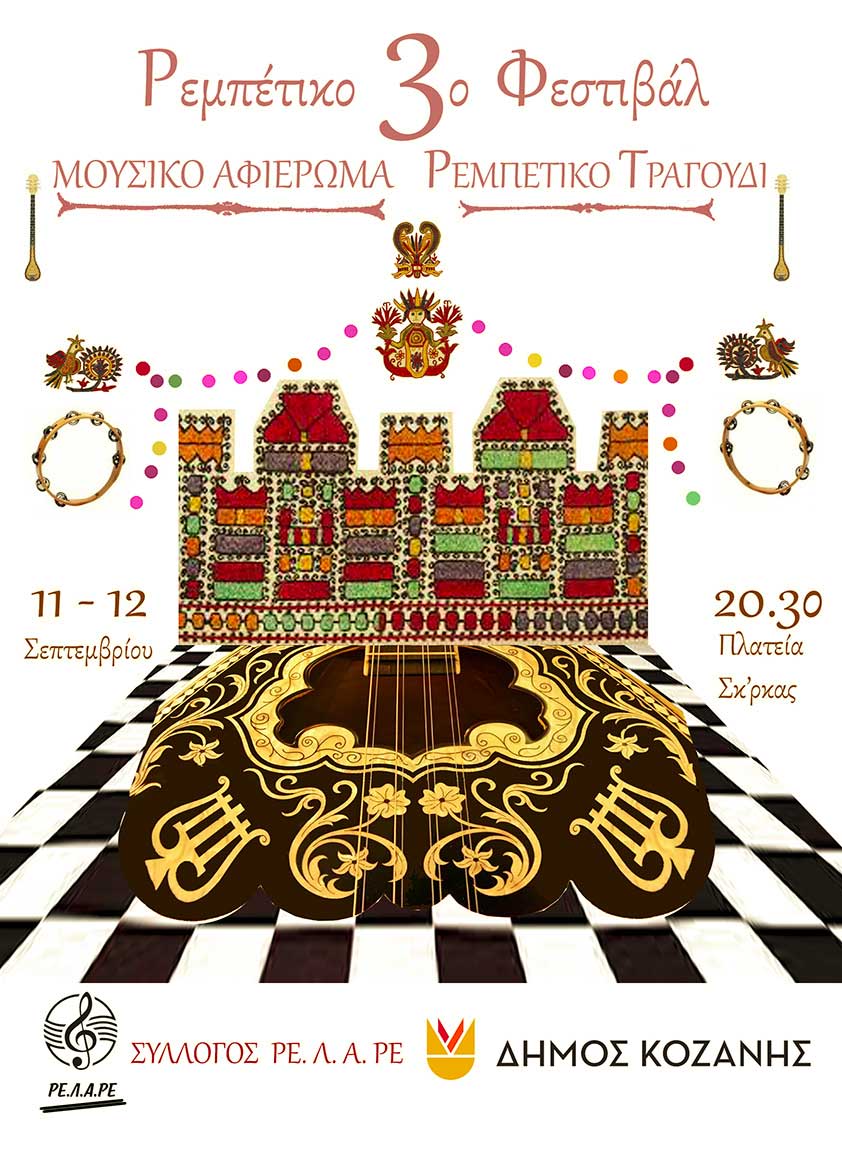 Ο Δήμος Κοζάνης και ο Σύλλογος για το Ρεμπέτικο και Λαΐκό Αστικό Ρεπερτόριο (ΡΕ.Λ.Α.ΡΕ.), στο πλαίσιο των 43ων Λασσανείων, διοργανώνουν από κοινού το 3ο Ρεμπέτικο Φεστιβάλ που θα πραγματοποιηθεί την Πέμπτη 11 Σεπτεμβρίου και την Παρασκευή 12 Σεπτεμβρίου, στην πλατεία της Σκ’ρκας στην πόλη της Κοζάνης.