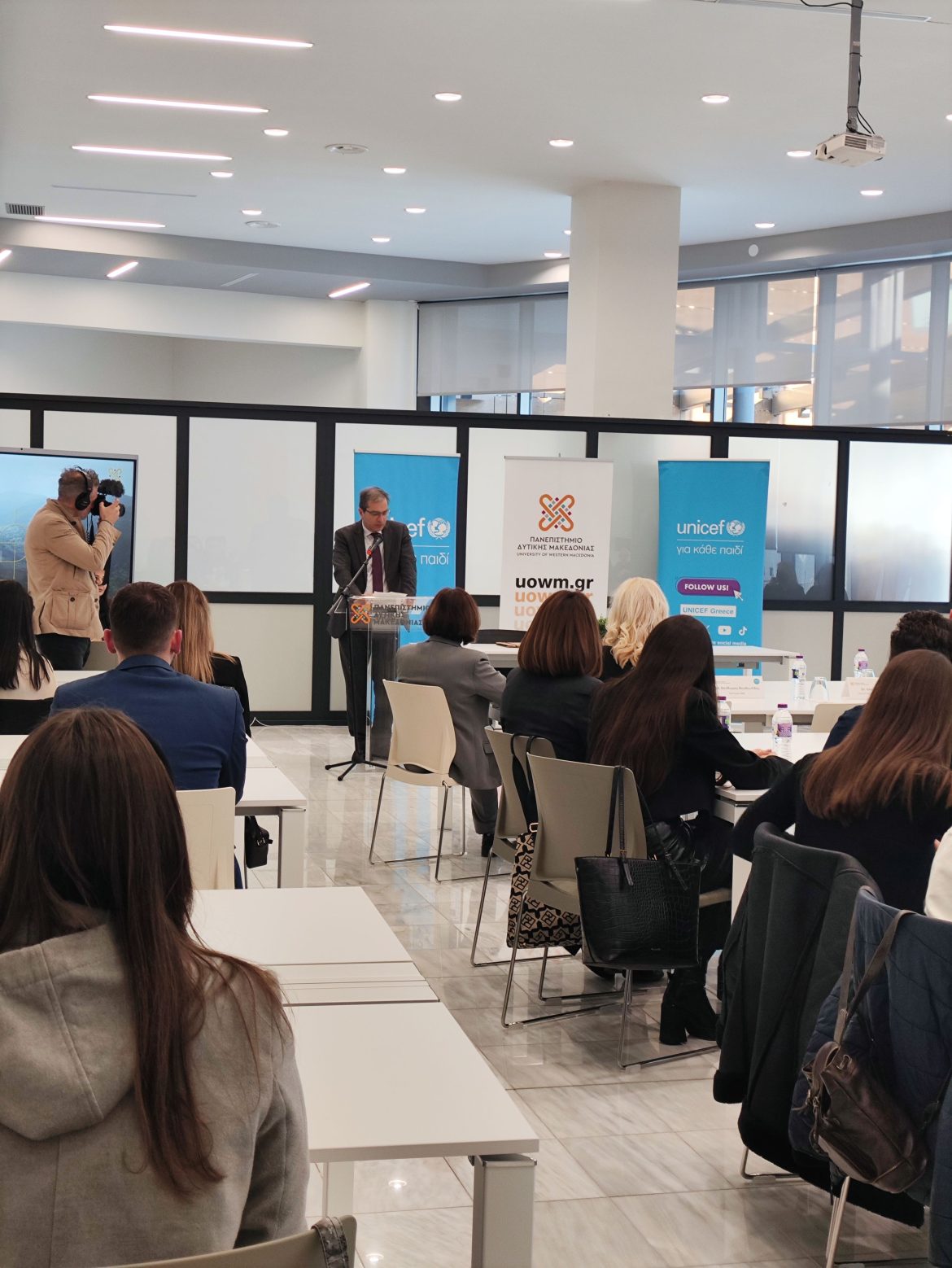 “Είμαι ιδιαίτερα χαρούμενος και συγχαίρω το Πανεπιστήμιο Δυτικής Μακεδονίας για την ίδρυση του Κέντρου για τα Δικαιώματα του Παιδιού. Με αυτή την πρωτοβουλία, το Πανεπιστήμιο εντάσσεται σε ένα δίκτυο ακαδημαϊκών ιδρυμάτων στην Ελλάδα και διεθνώς, συμβάλλοντας ενεργά στην προώθηση και ενίσχυση των δικαιωμάτων των παιδιών. Η UNICEF θα συνεργαστεί στενά με το Πανεπιστήμιο, διασφαλίζοντας ότι κάθε παιδί απολαμβάνει τα δικαιώματά του. Η ίδρυση του Κέντρου θα έχει αναμφίβολα θετικό αντίκτυπο στη ζωή των παιδιών και στην κοινωνία συνολικά.”