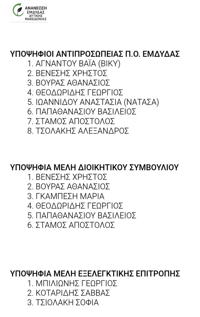 Υποψήφιοι για το ψηφοδέλτιο ΑΝΑΝΕΩΣΗ στις εκλογές ΕΜΔΥΔΑΣ